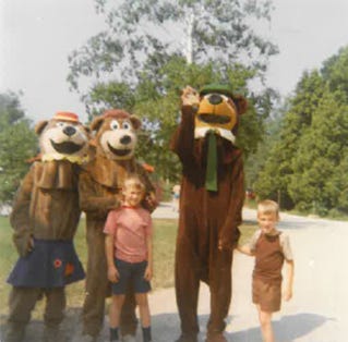 Now to the outside world, Yogi is just a normal-sized bear. (Well, normal-sized bear costume.) But to this day I still remember him as a giant grizzly, ready to come and snatch me away from my dad. And we already know how shoddy the child protection gear was in those days, so I wasn’t trusting that makeshift backpack my dad had me in. Yogi could have easily torn that things to shreds in seconds.