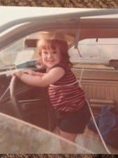 Yep, that’s me in the family car. One end of a rope tied around my waist, the other end tied to the steering wheel. I look pretty happy to be playing inside the car. I must have then started doing something wrong (beeping the horn, perhaps?) because later I was banished to outside of the car, where I could still roam on my leash … at least within a 15-foot radius.
