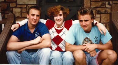 This picture was taken the summer of “the scooter incident”. Not only did I have aerodynamic hair, but it turned red from all the iron in our water. Plus there is way too much stone washed denim going on here.