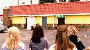 Bonus footage: My friends and I approaching the Donut Man building. (Oh wait - I may have mixed that up with the Brazilian place in Bridesmaids. But you get the gist.)