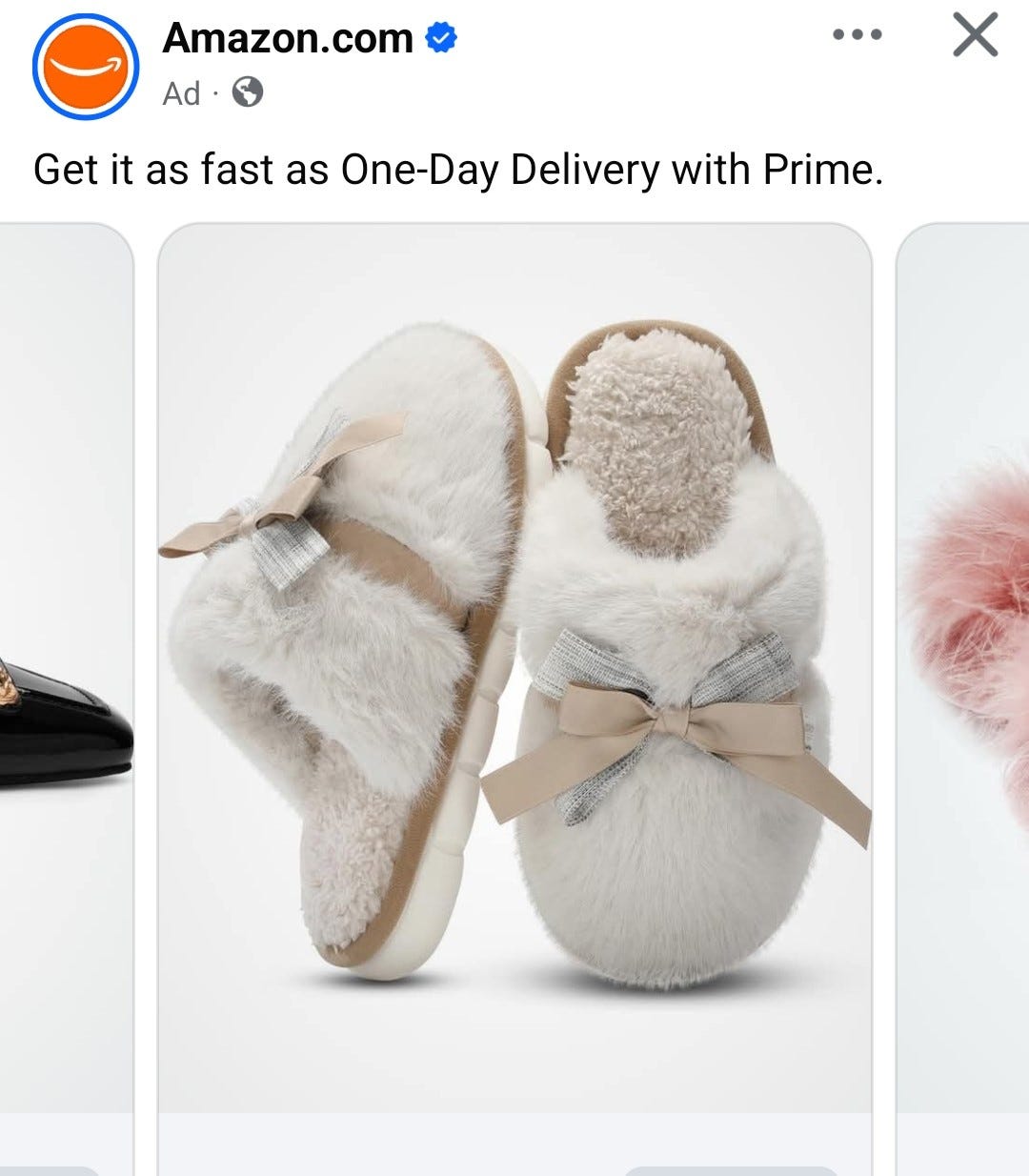 Example 1: Amazon presented me with these super fluffy slippers. In fairness, my current slippers were looking pretty ratty (and I’m embarrassed to say how old they were) so I did buy these little beauties. They even garnered a “super cute” response from my husband. No regrets.