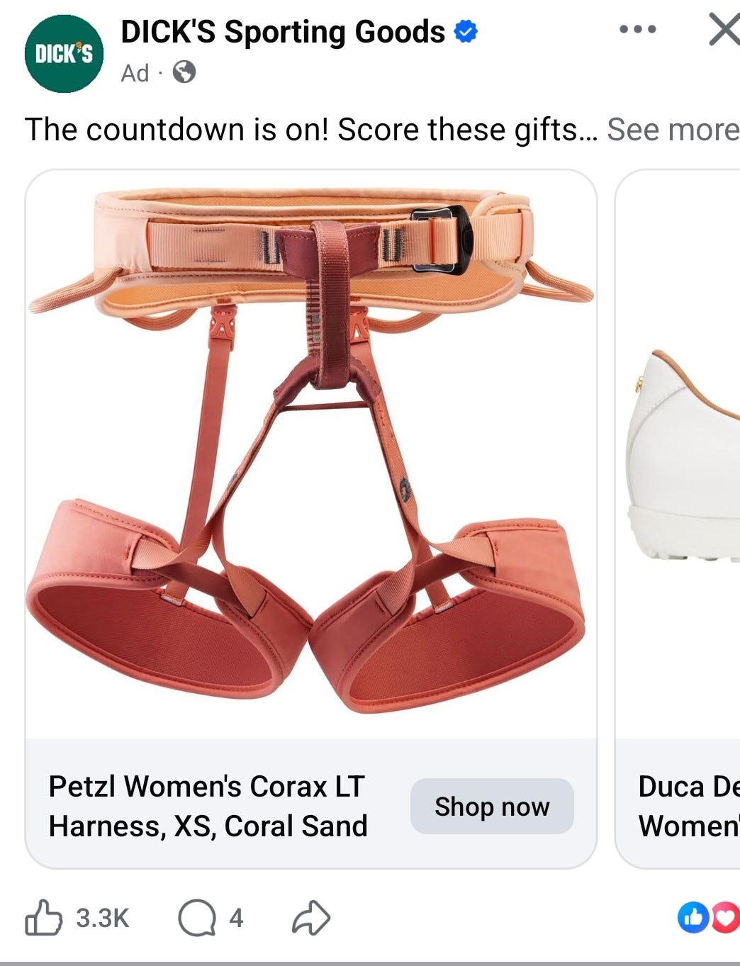 Example 1: Dick’s Sporting Goods shows me a HARNESS. What? I have never shown any interest in horses in my life, much less clicked on posts about horses? I am so confused. What in the Black Beauty is going on? (That’s a famous horse name, right?)