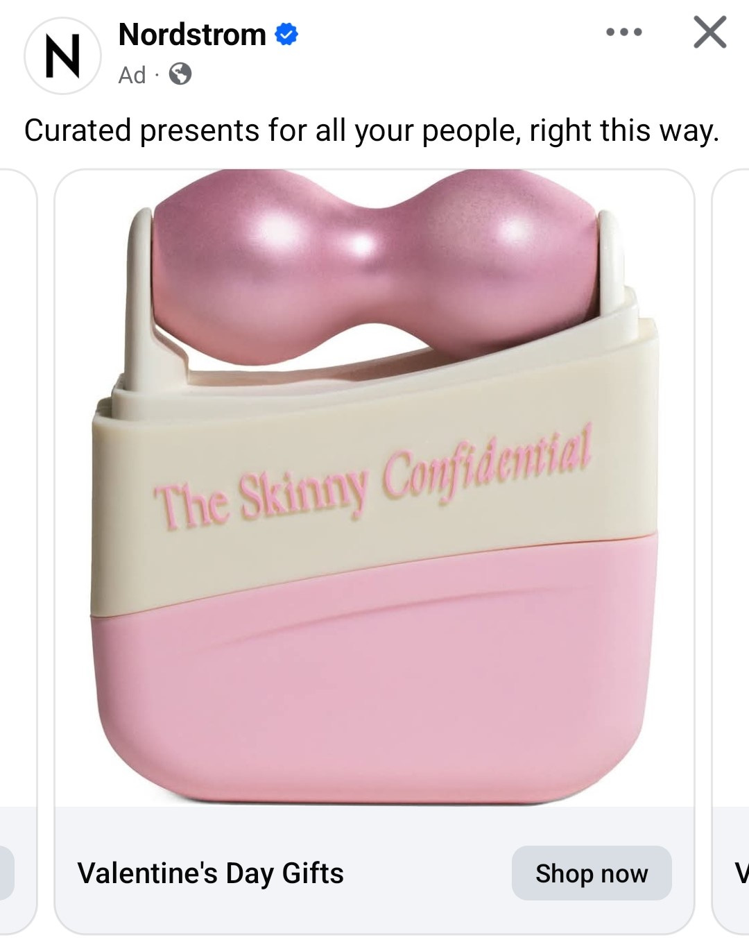 Speaking of Valentines gifts, my Facebook feed recently featured some “curated” Valentines gift suggestions from Nordstrom. I expected tasteful jewelry, frilly lingerie, or perhaps some expensive perfume. What I got both frightened and confused me. Here is what “all the ladies are wanting for Valentines day” (???), in no particular order: